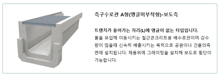 측구수로관 A형(앵글 미부착) : 300A*400A, 500A, 600A