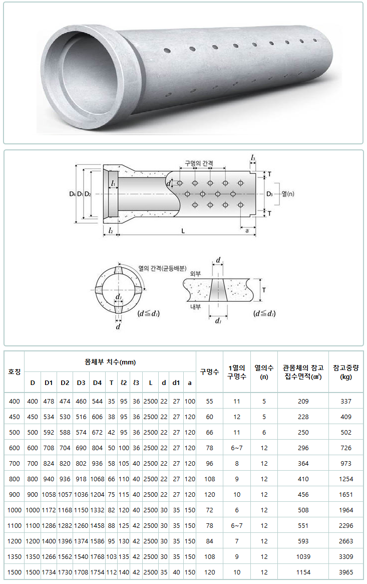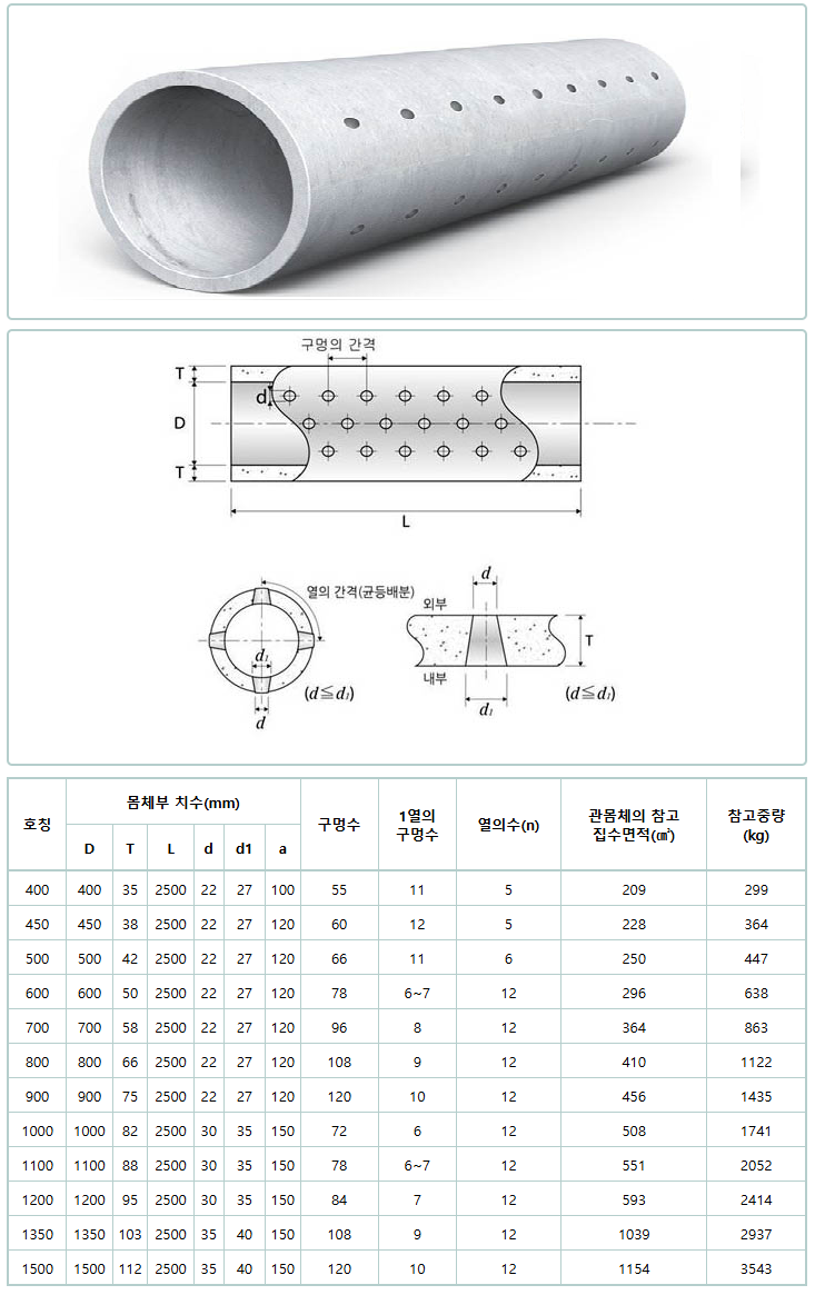 유공 흄관 B형 (원심력 철근 콘크리트관)