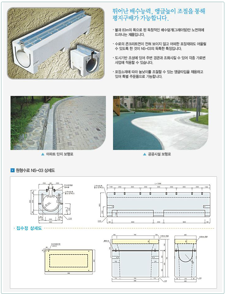 원형 사각 수로관(NS-03형) 타공형 그레이팅