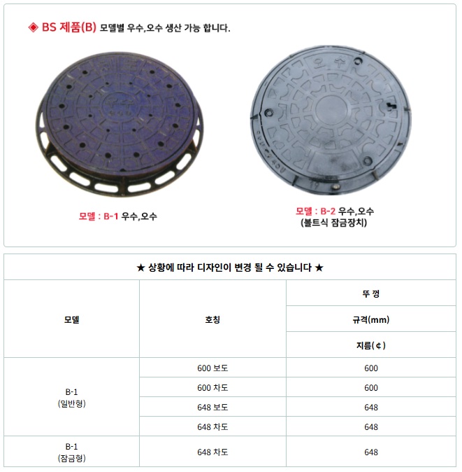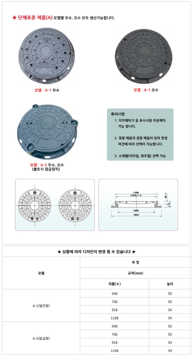 단체표준 우수, 오수 원형주철 맨홀뚜껑(일반형, 잠금장치)
