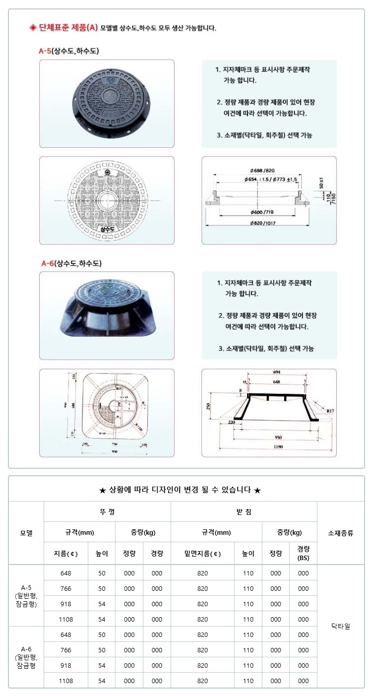 상.하수도 원형주철 맨홀뚜껑(일반형, 잠금장치)